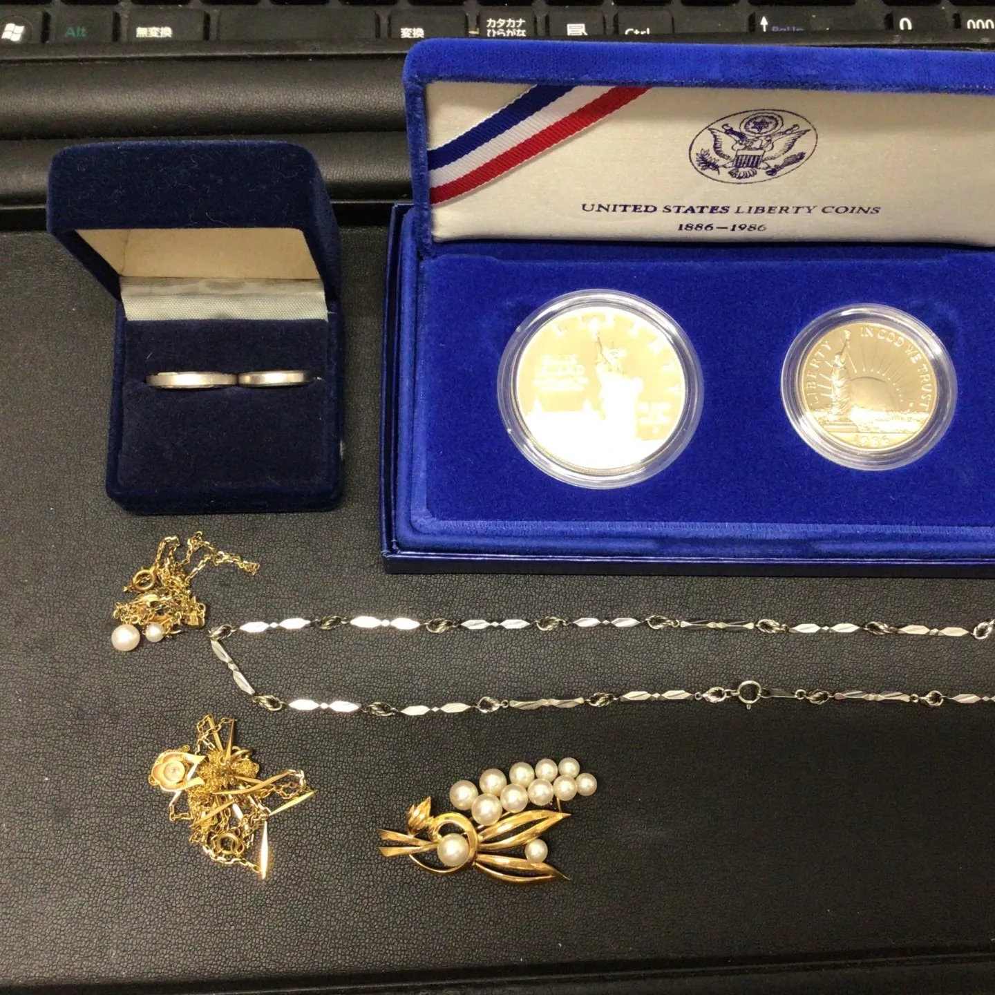 お客様にお時間頂きまして、早速査定開始。真珠は残念ながらお値段付か
